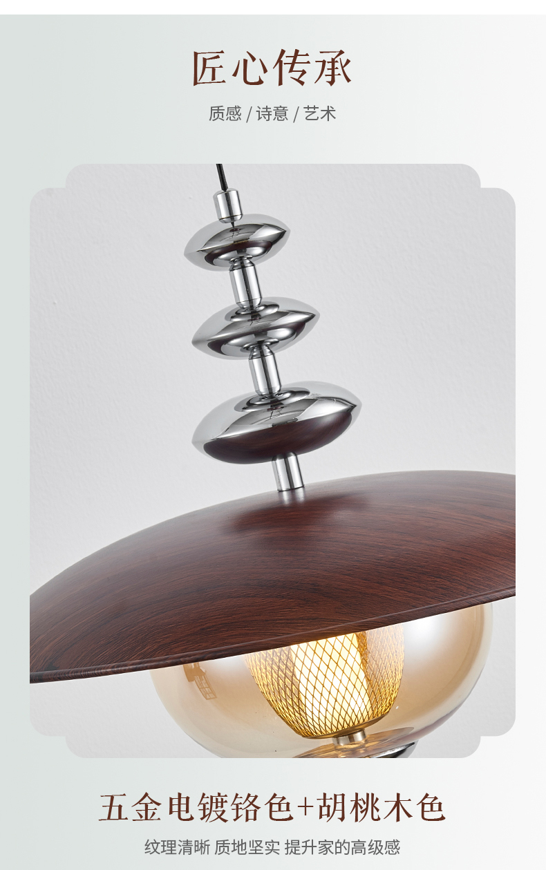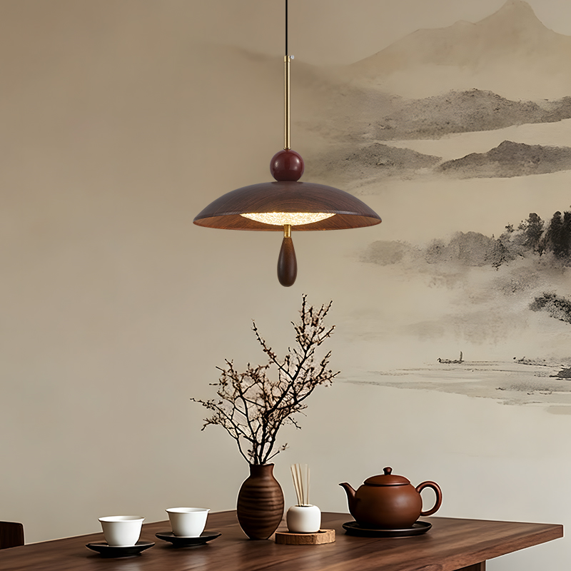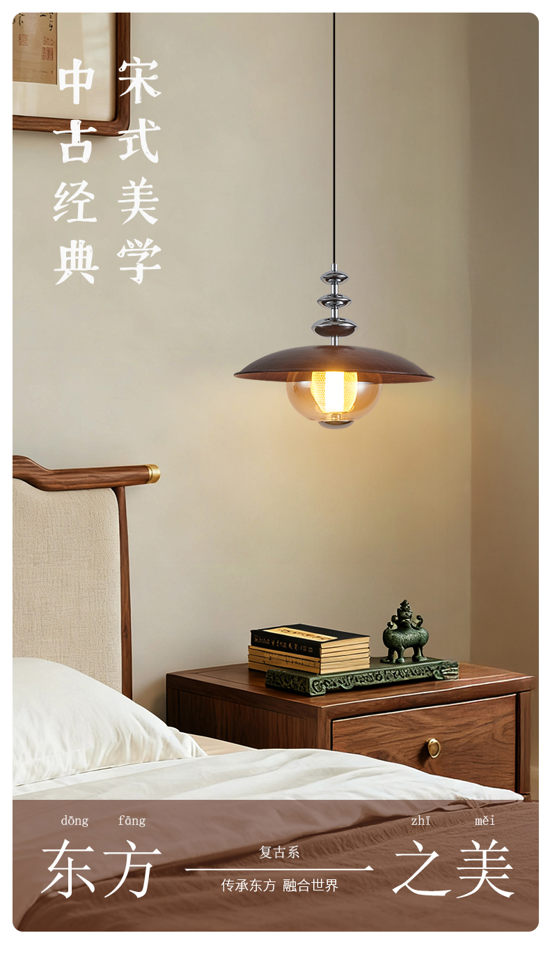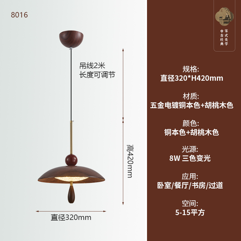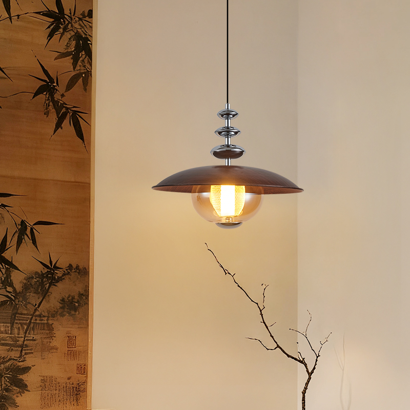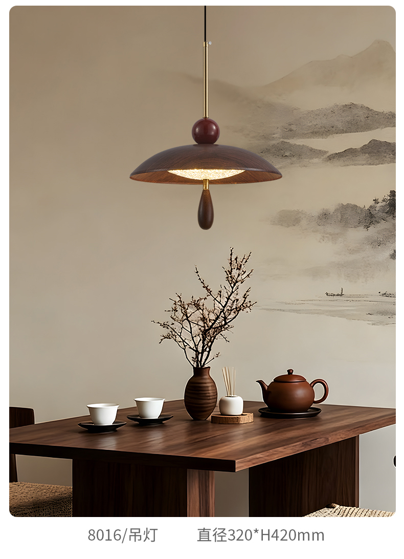 中古風餐廳吊燈包豪斯複古吧台飛碟燈胡桃木色飯廳燈餐桌燈具