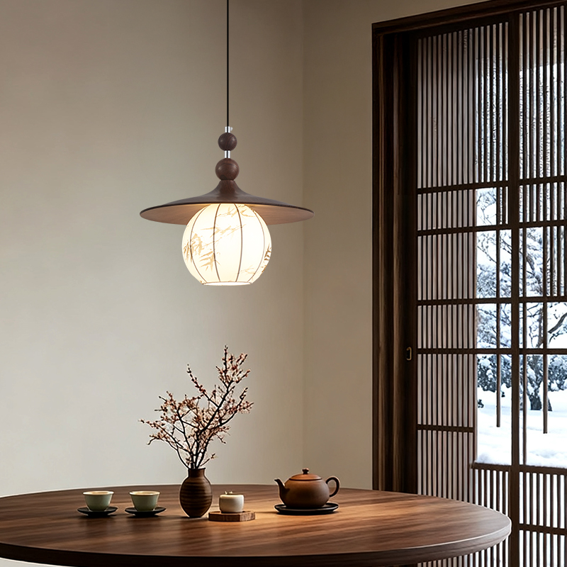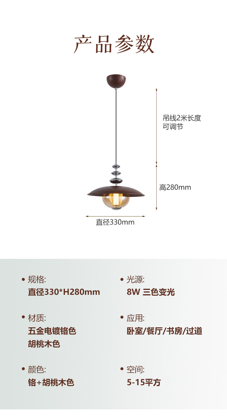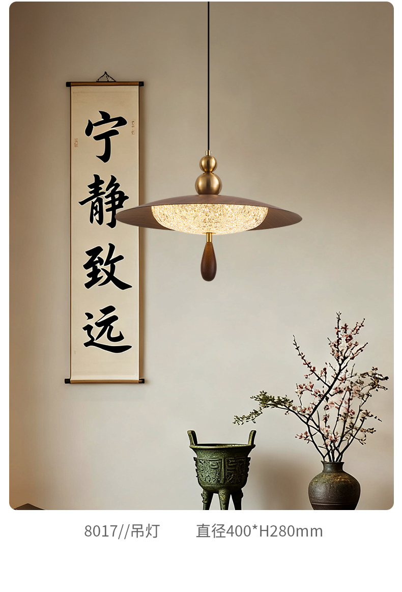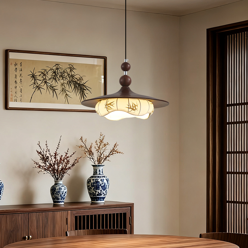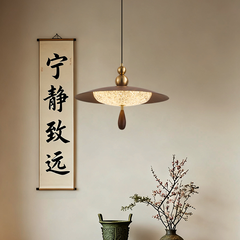 中古風餐廳吊燈包豪斯複古吧台飛碟燈胡桃木色飯廳燈餐桌燈具