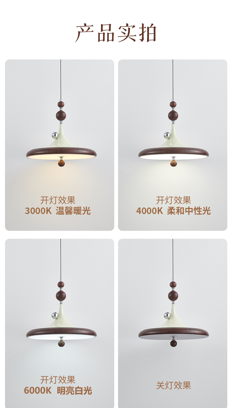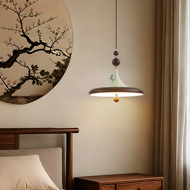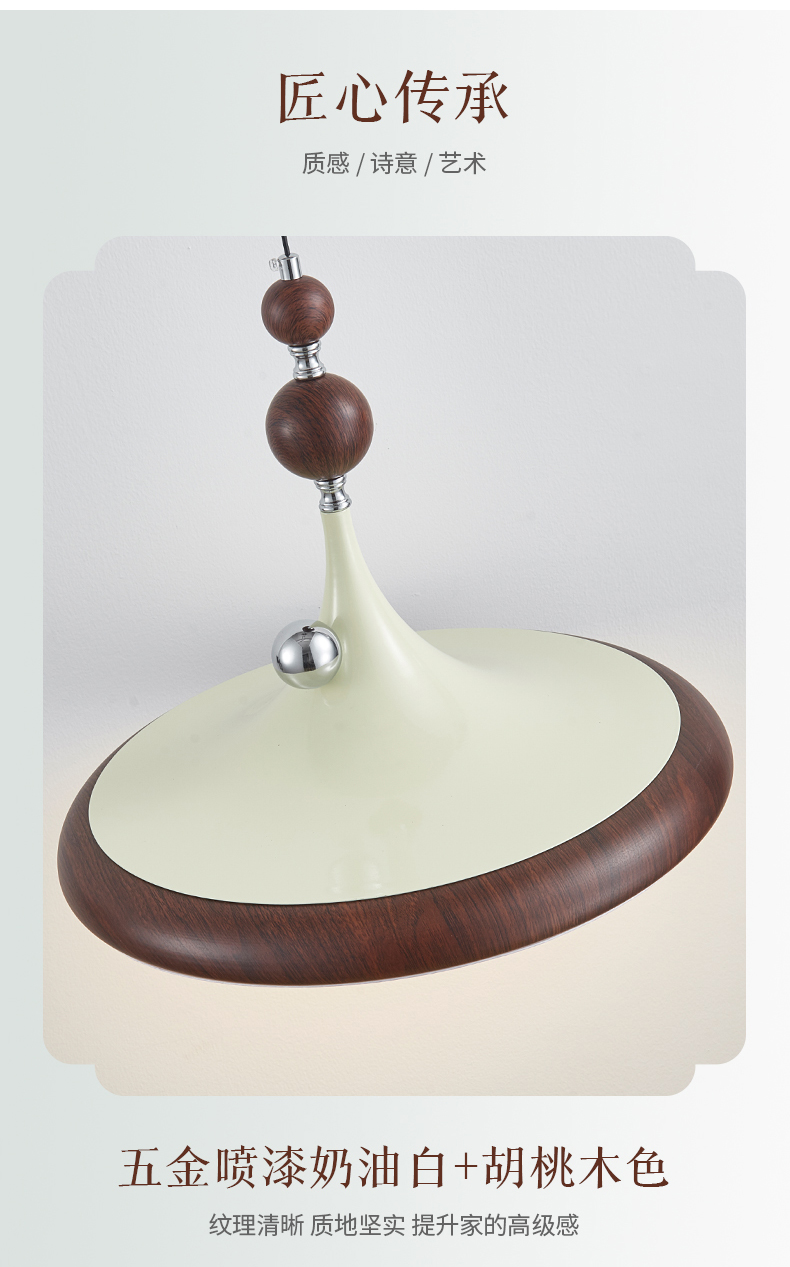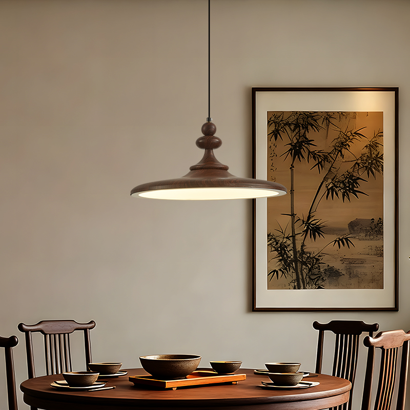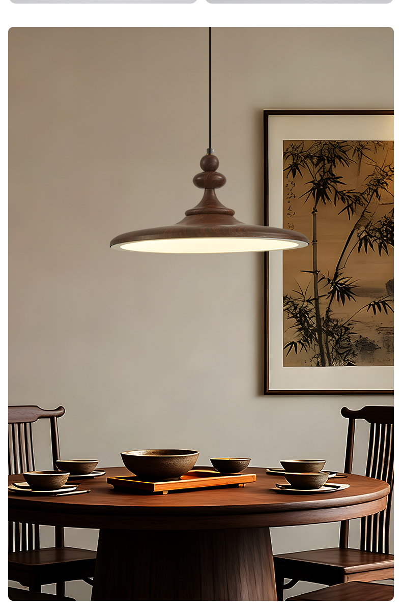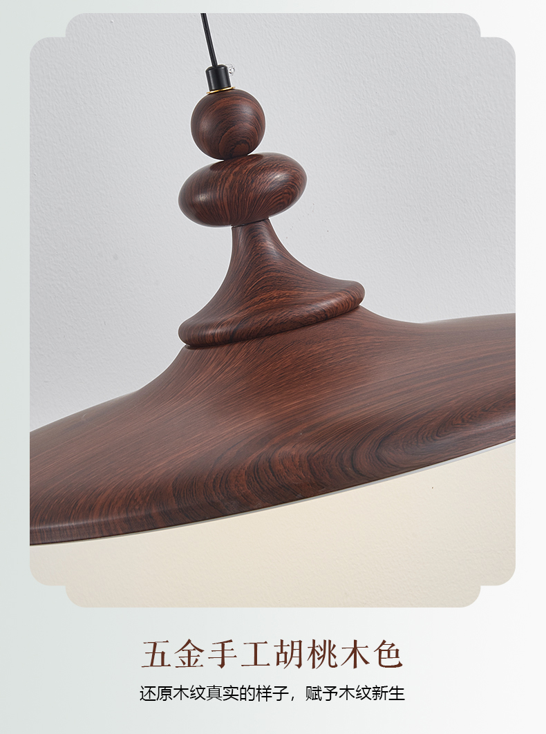 中古風飛碟餐廳吊燈法式複古胡桃木色簡約設計師款全光譜餐桌燈具