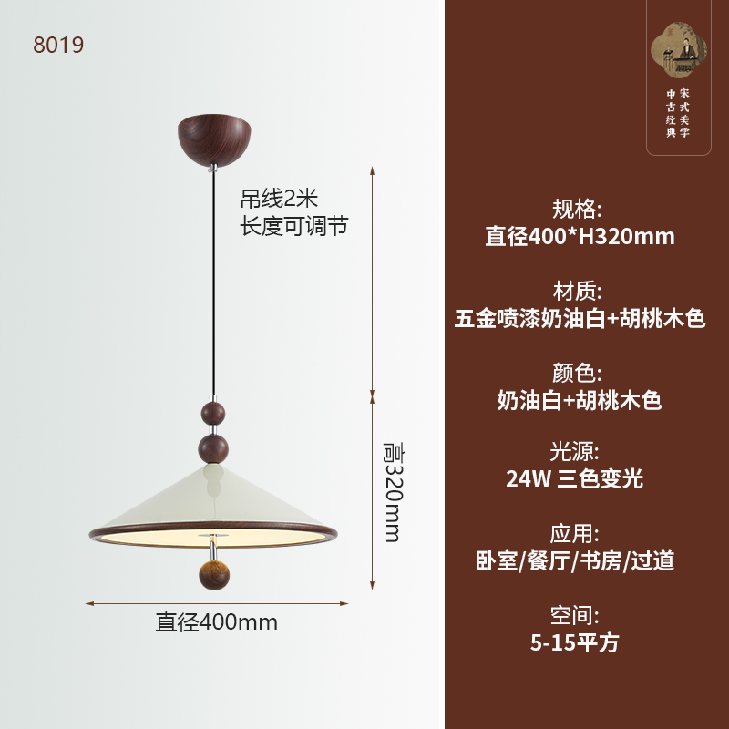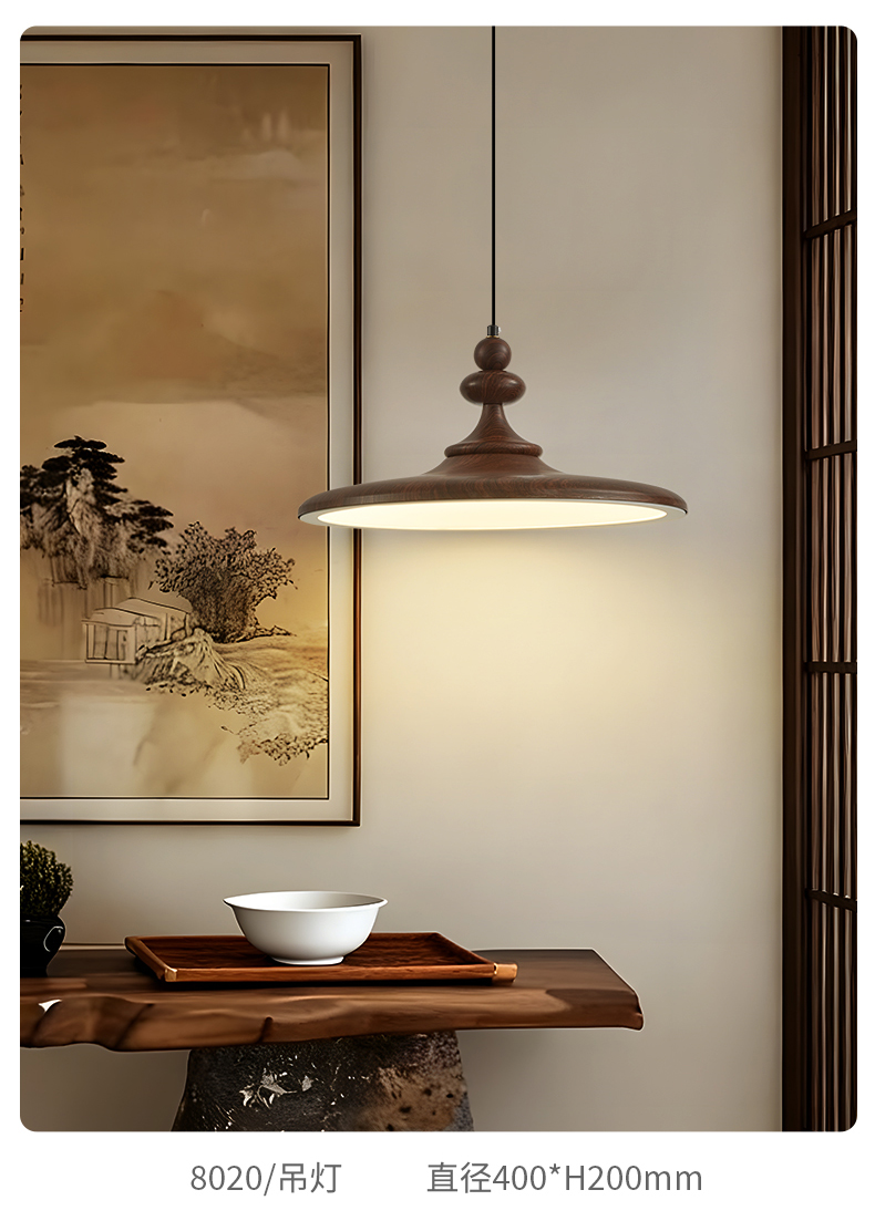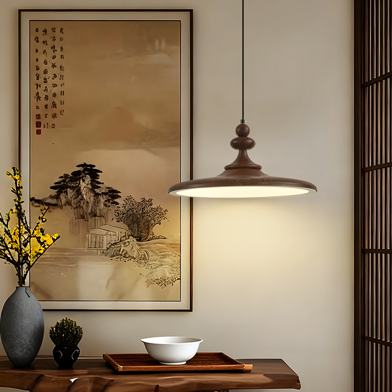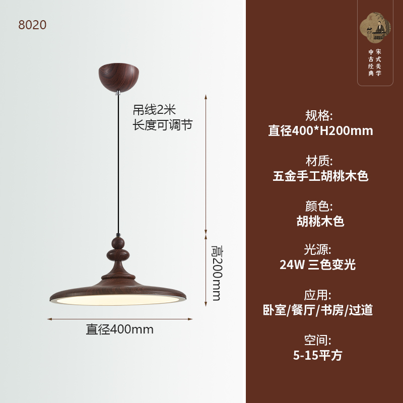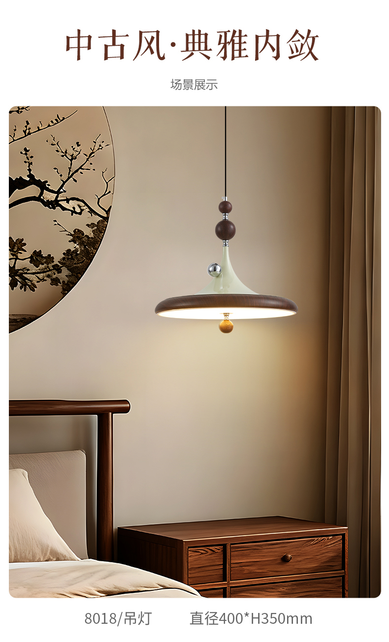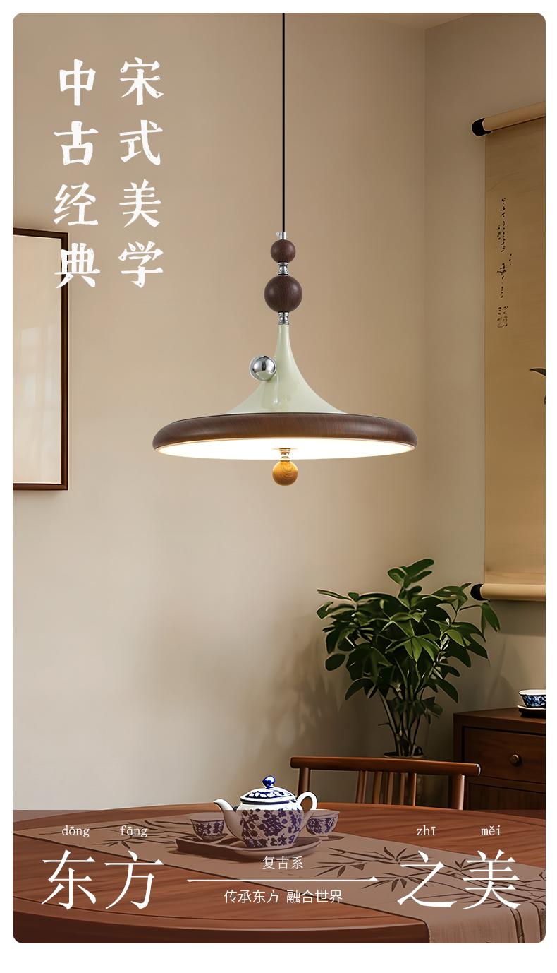 中古風飛碟餐廳吊燈法式複古胡桃木色簡約設計師款全光譜餐桌燈具