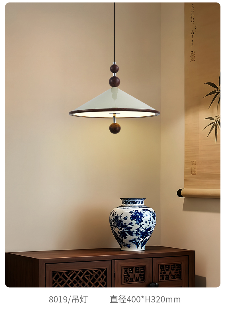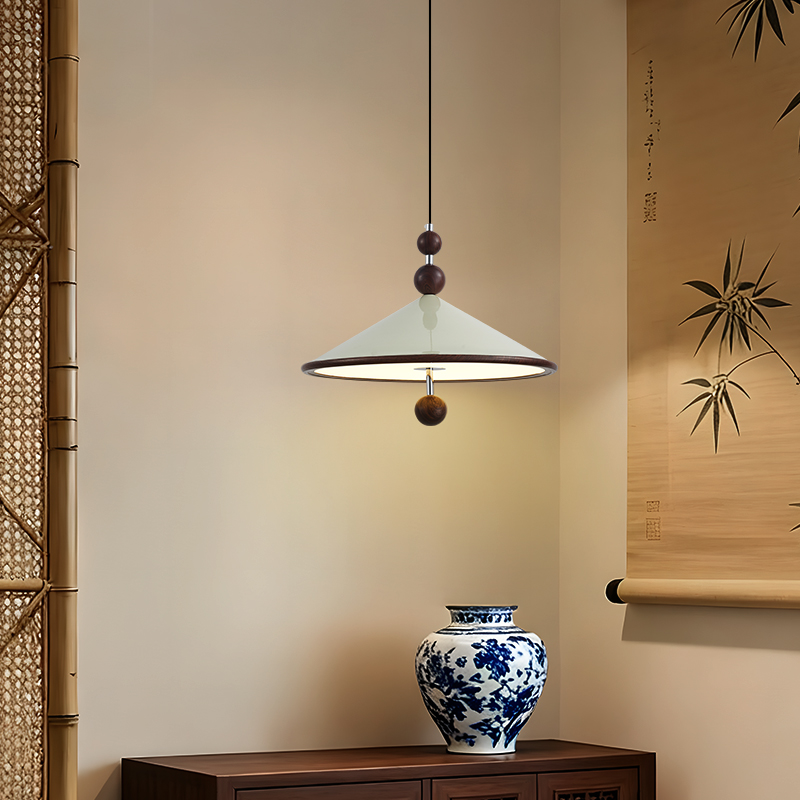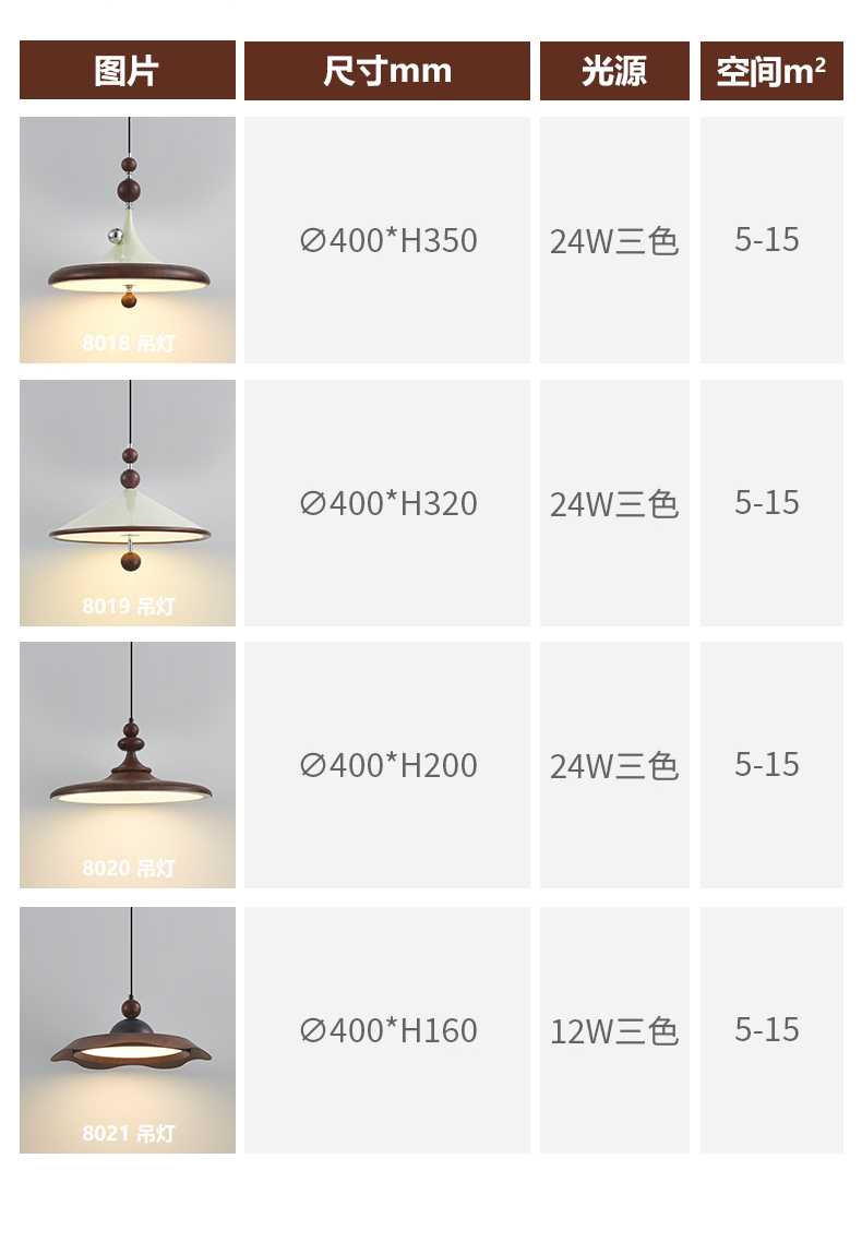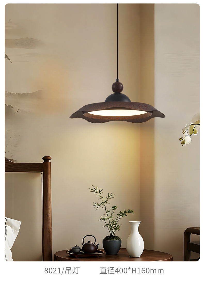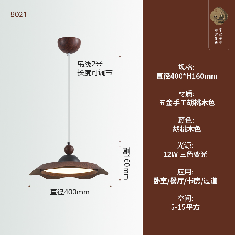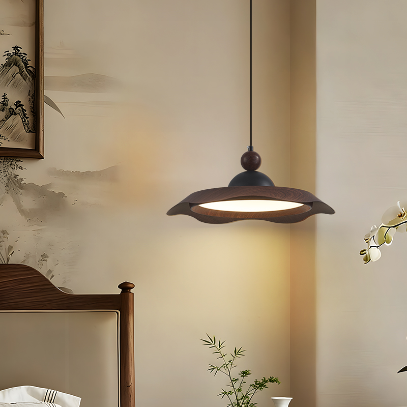 中古風飛碟餐廳吊燈法式複古胡桃木色簡約設計師款全光譜餐桌燈具