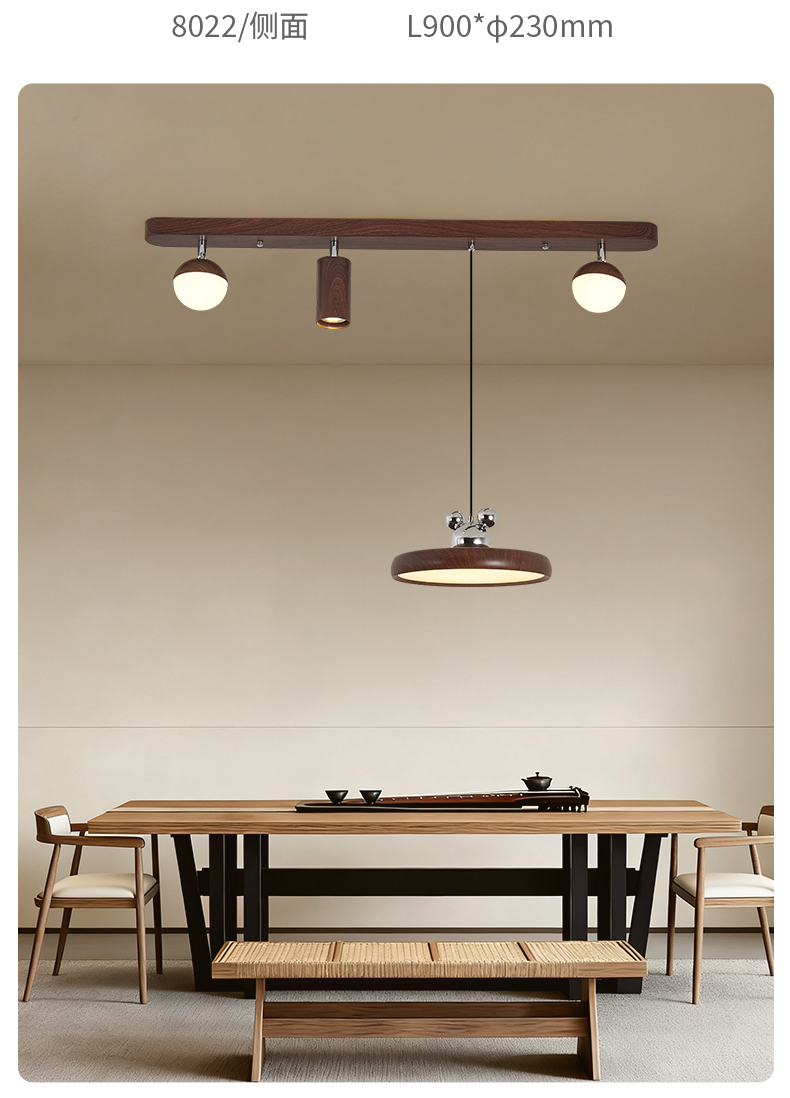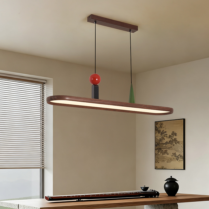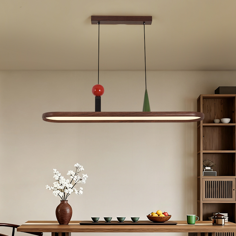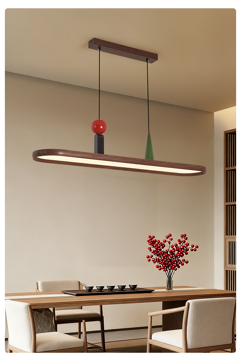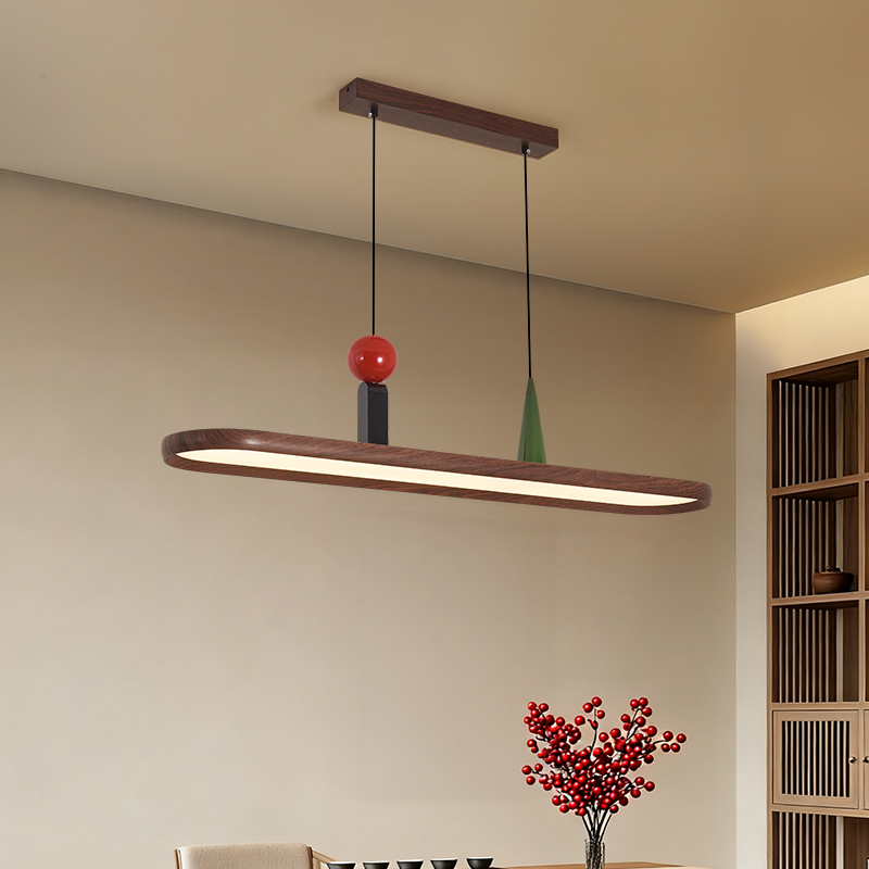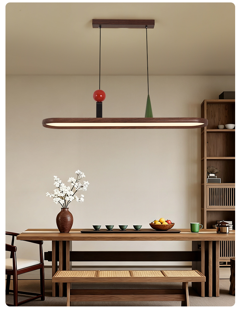 中古風餐廳吊燈複古胡桃木色茶室燈侘寂風長條飯廳餐桌島台吧台燈