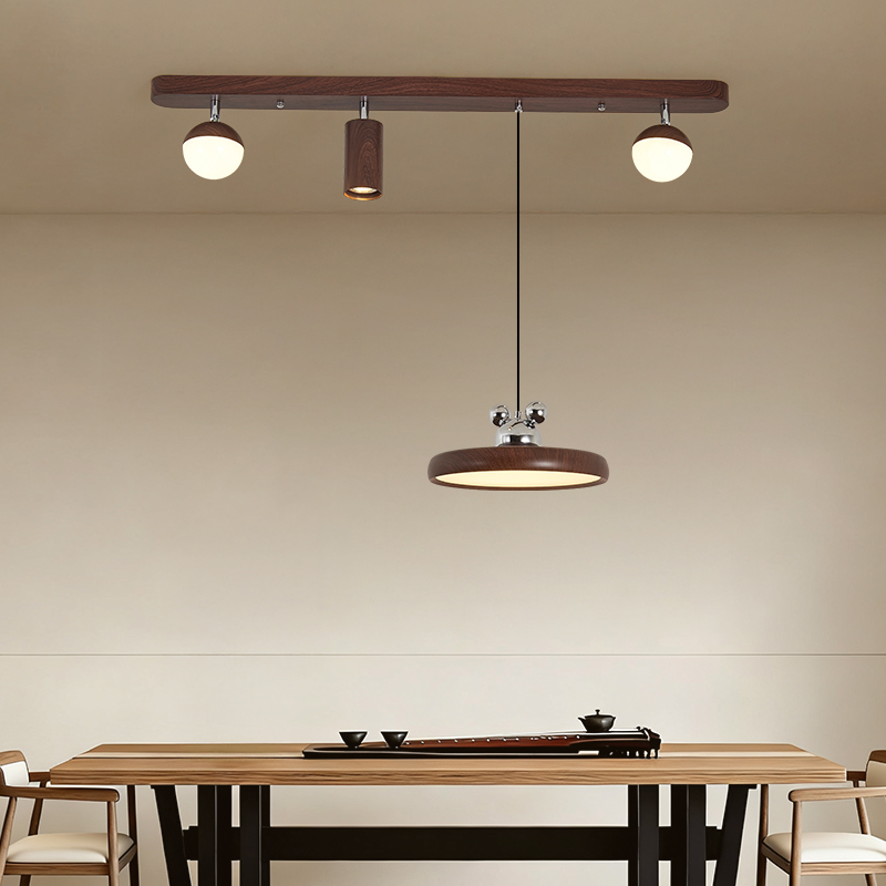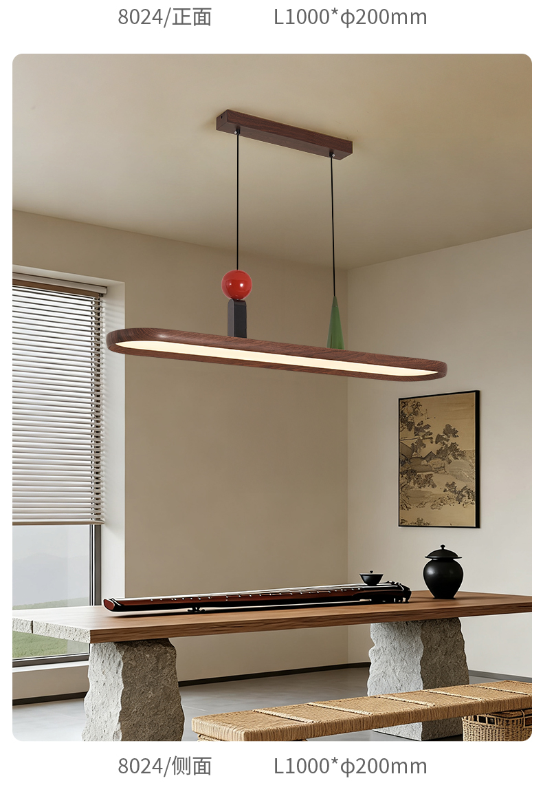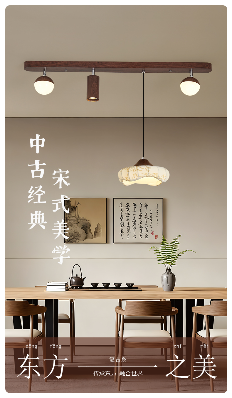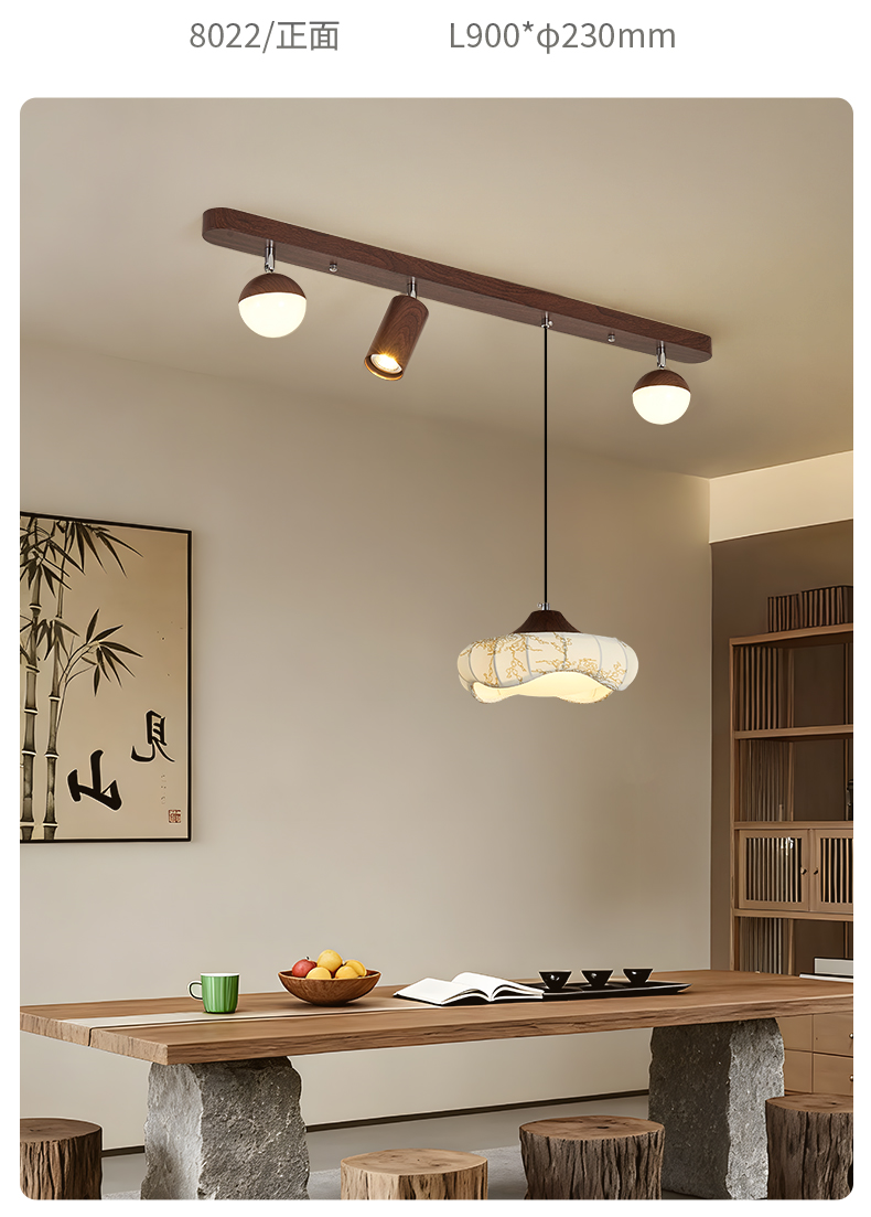 中古風餐廳吊燈複古胡桃木色茶室燈侘寂風長條飯廳餐桌島台吧台燈