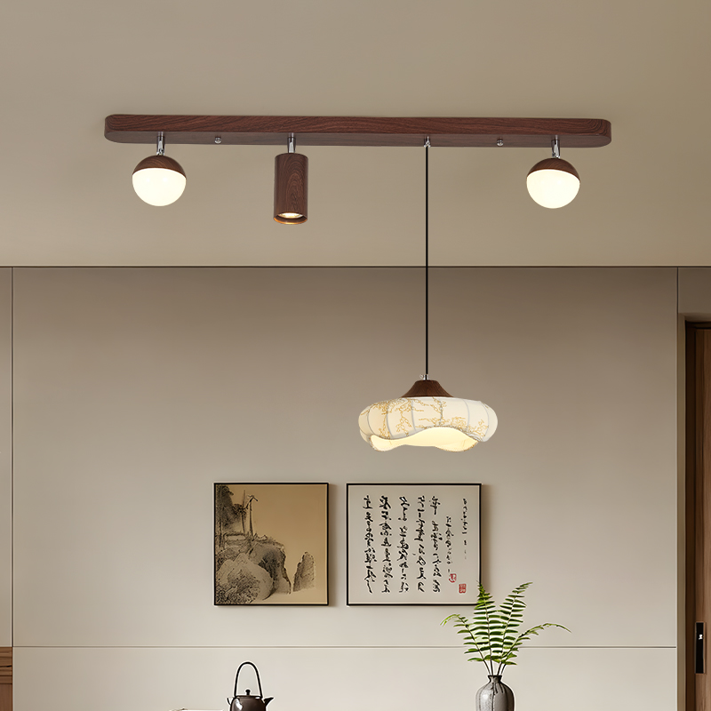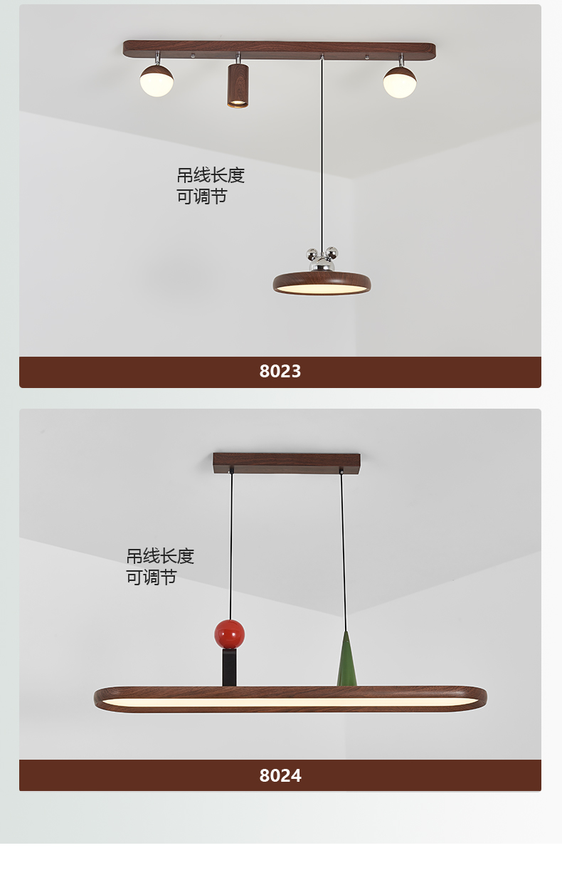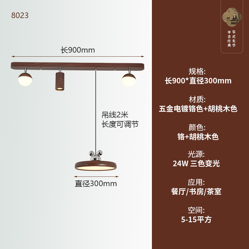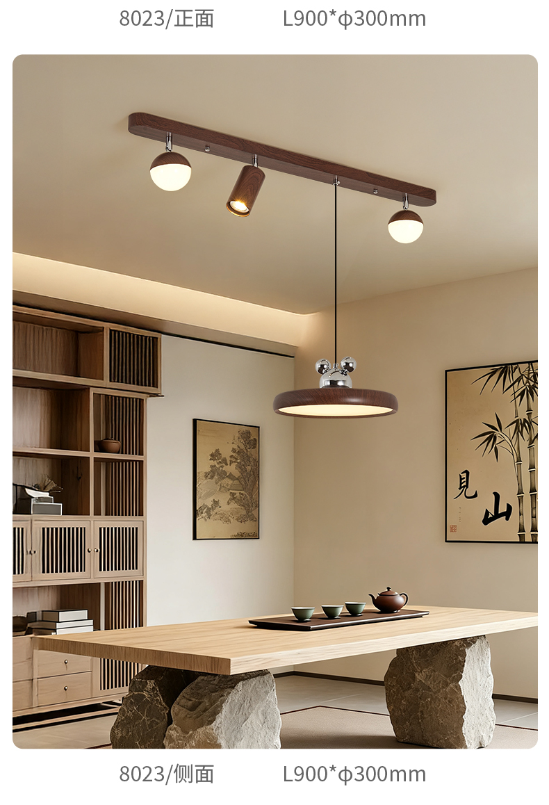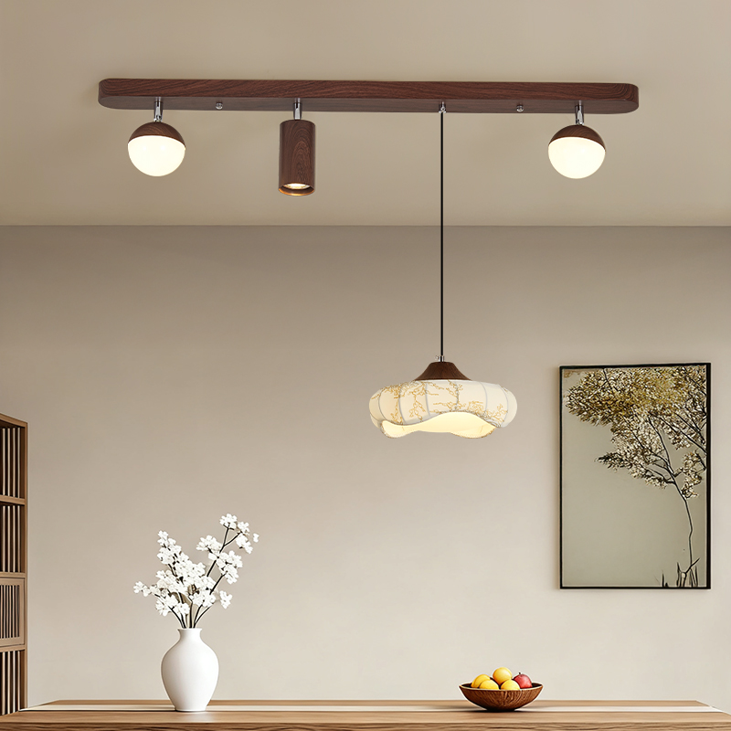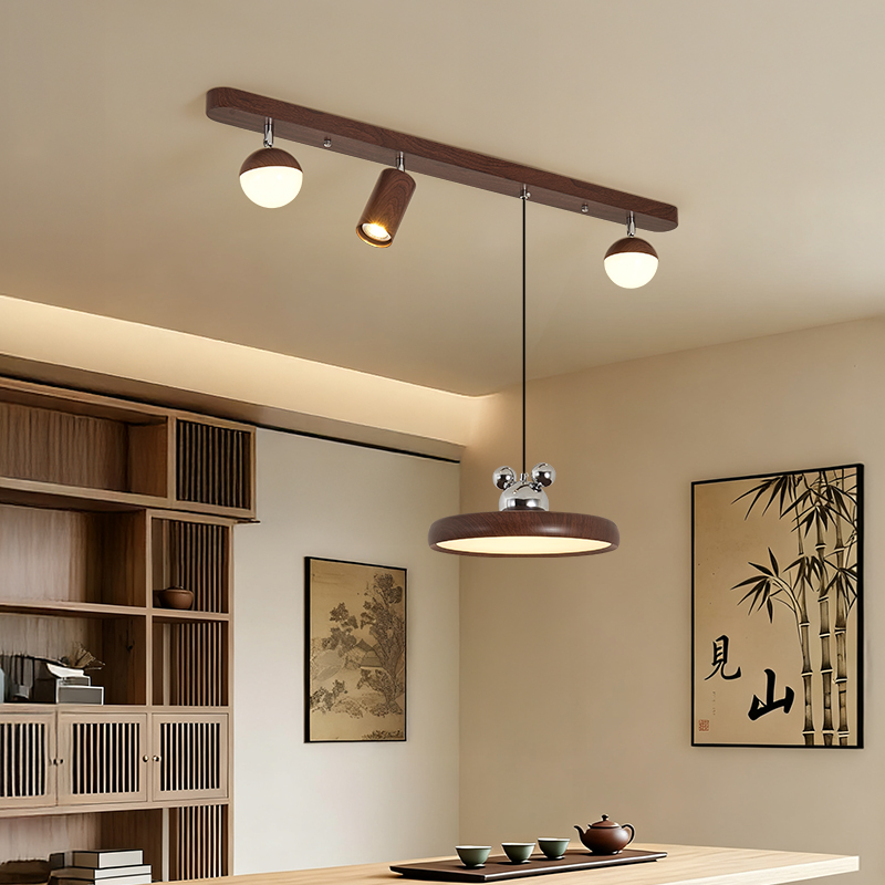 中古風餐廳吊燈複古胡桃木色茶室燈侘寂風長條飯廳餐桌島台吧台燈