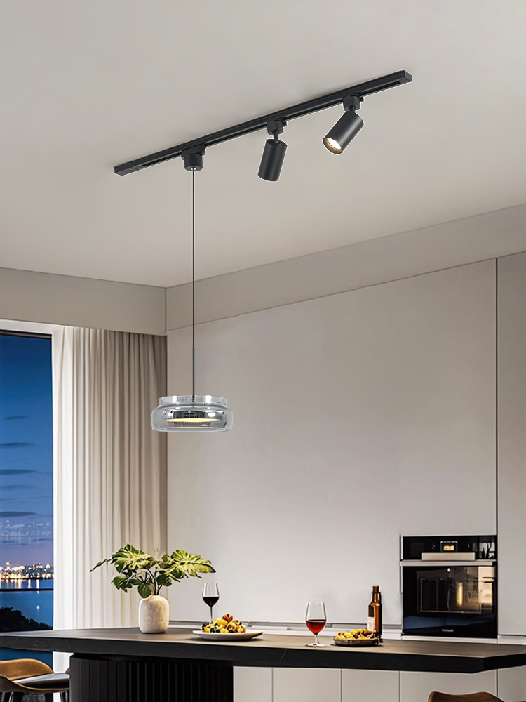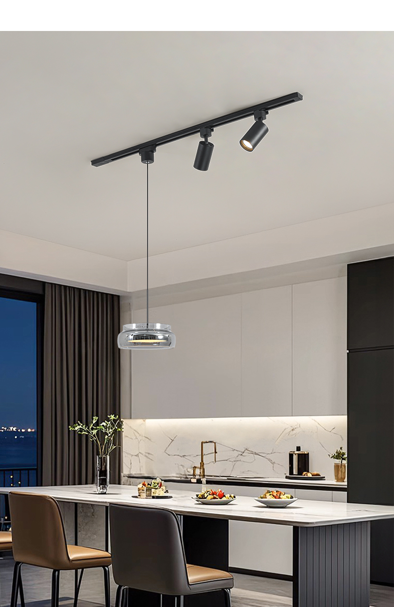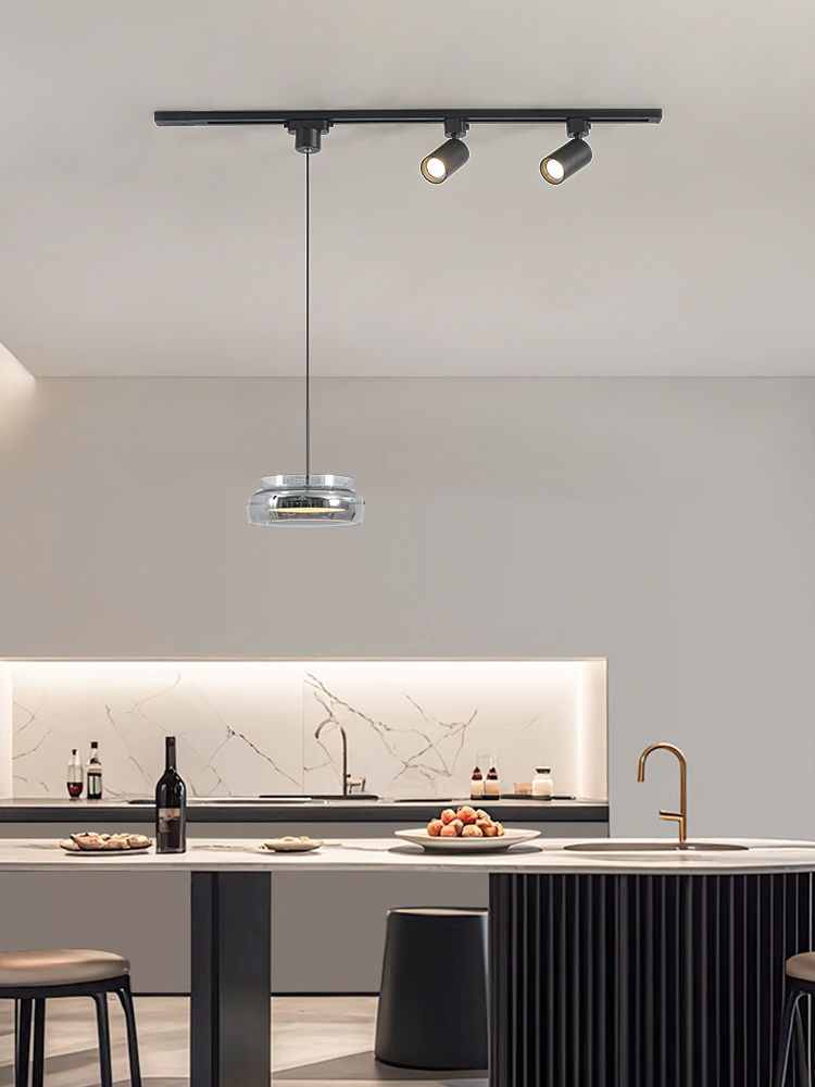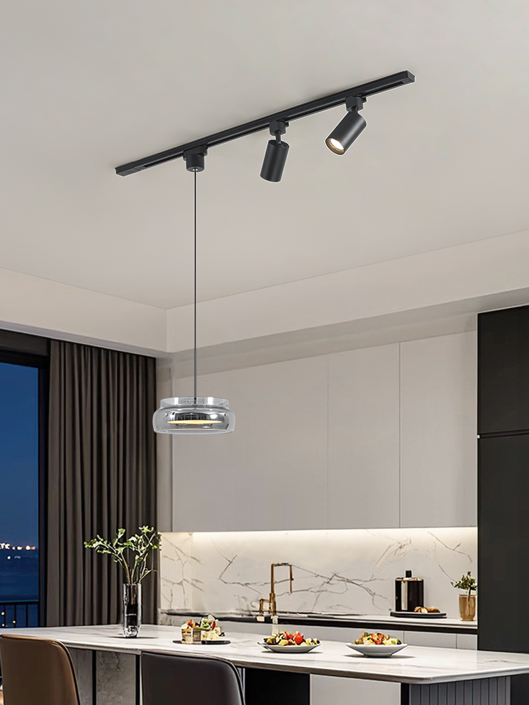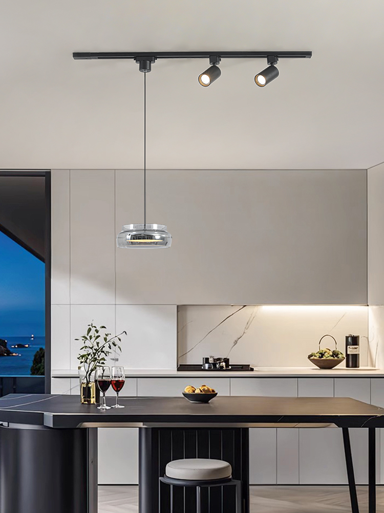 意式極簡餐廳吊燈軌道帶射燈2026年新款現代簡約吧台一字飯桌