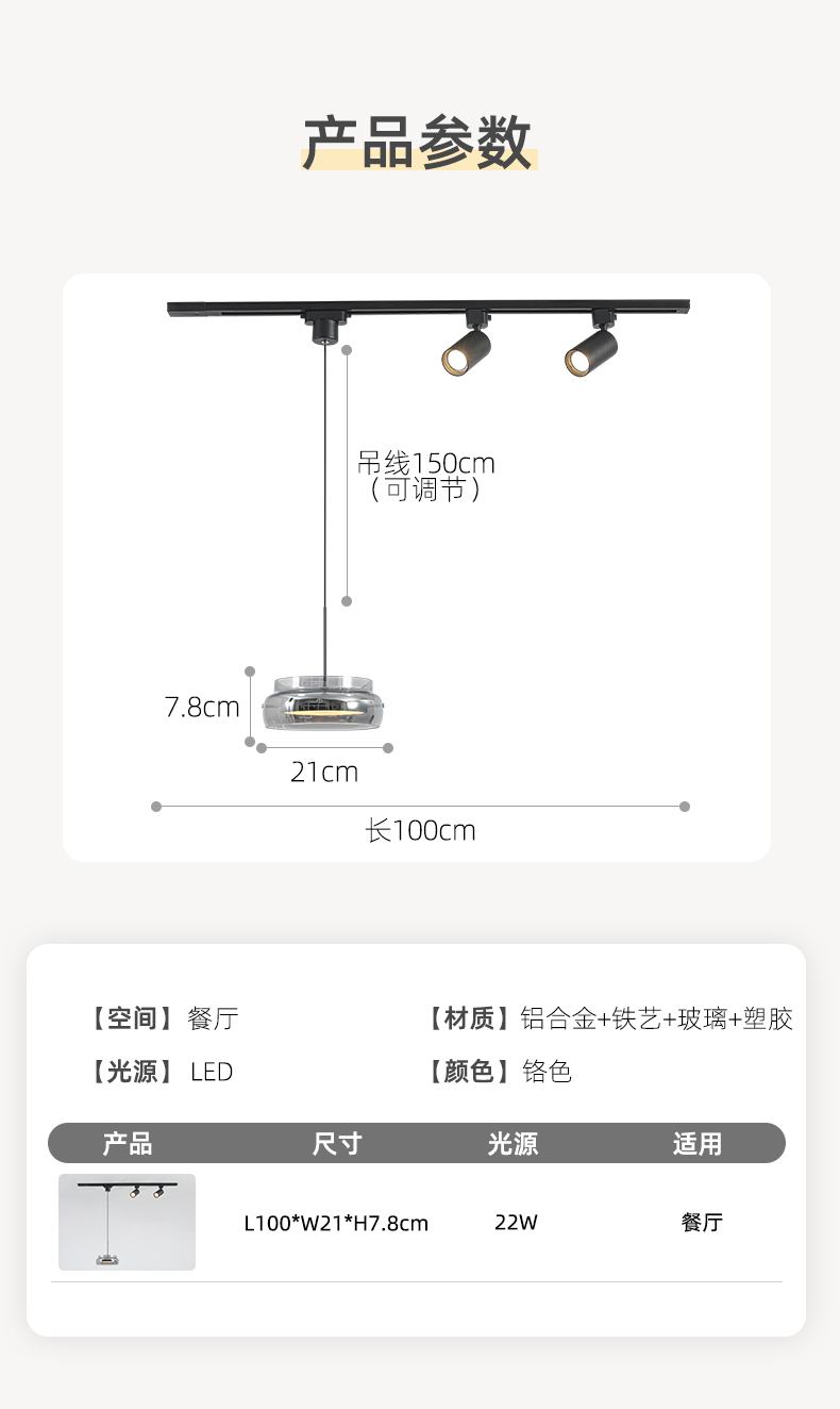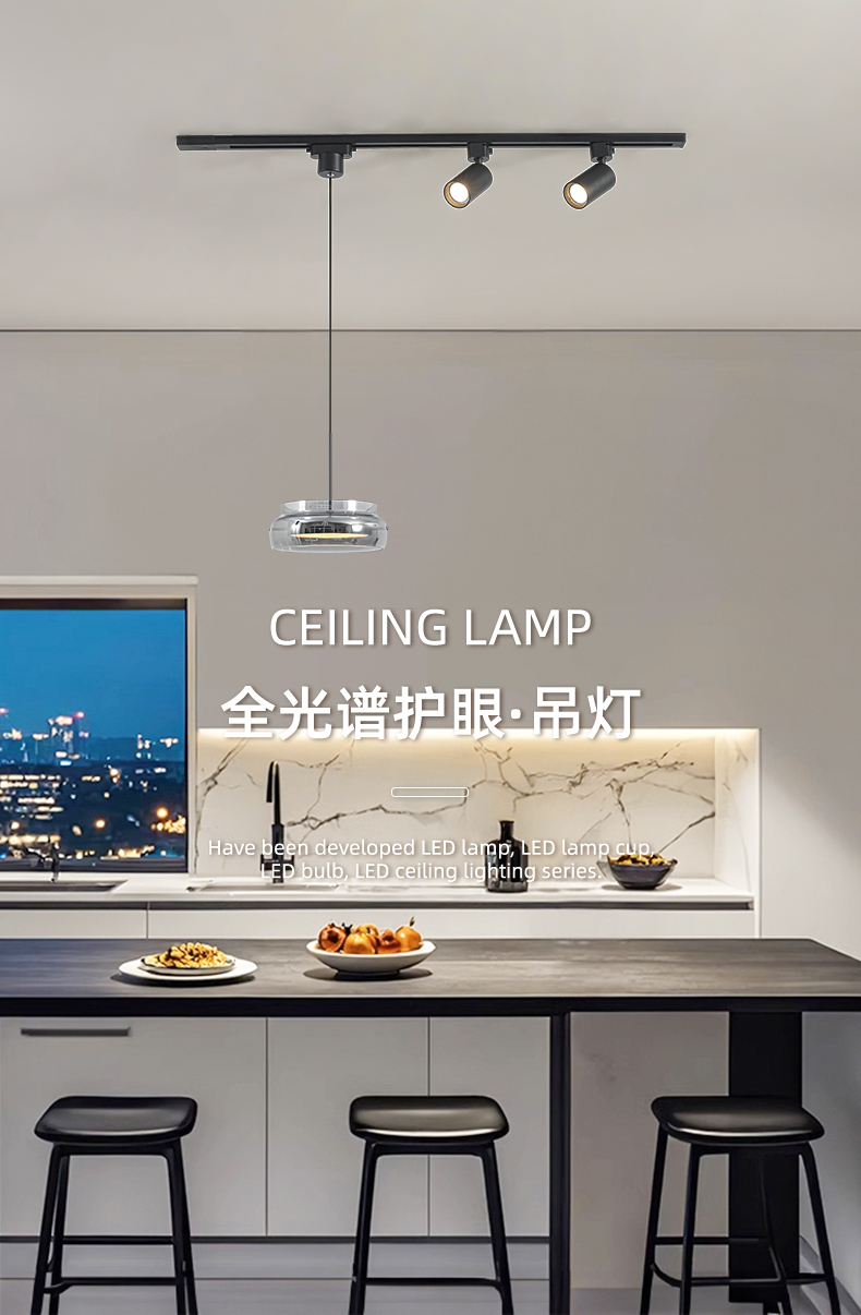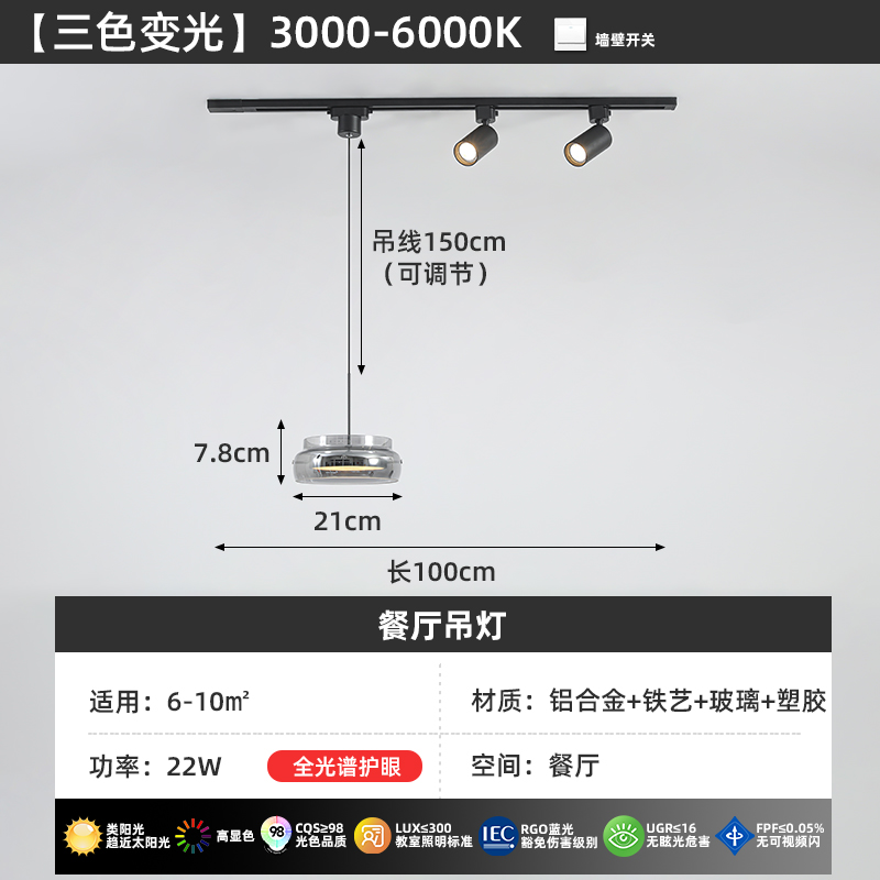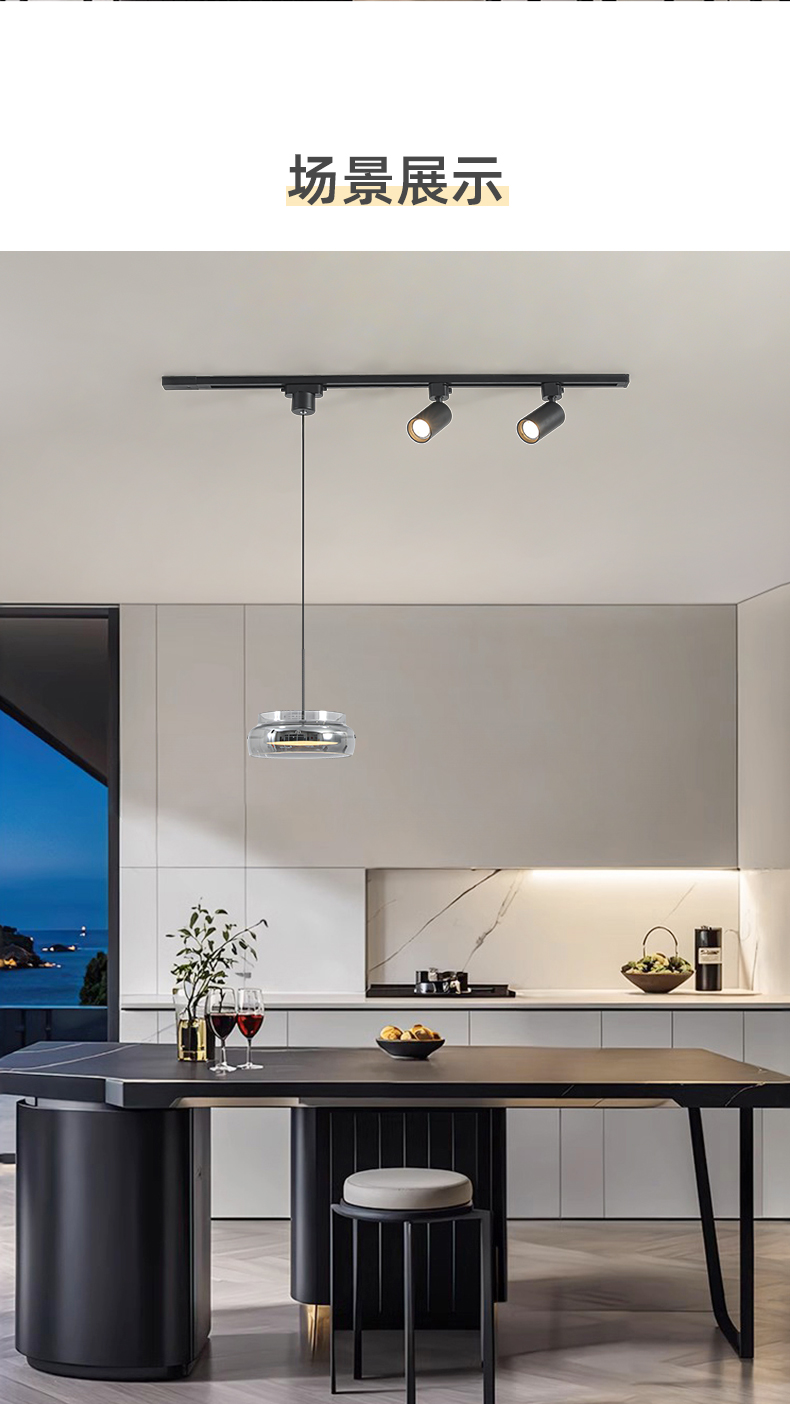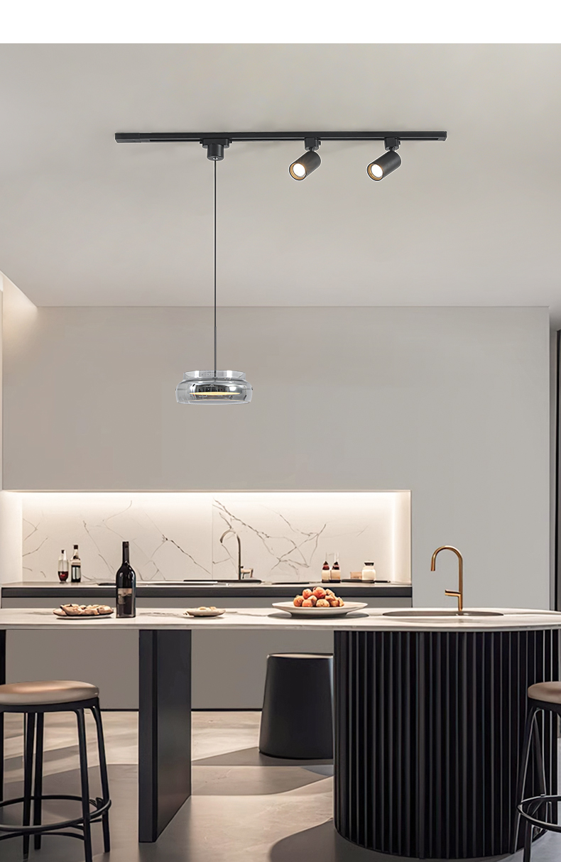 意式極簡餐廳吊燈軌道帶射燈2026年新款現代簡約吧台一字飯桌