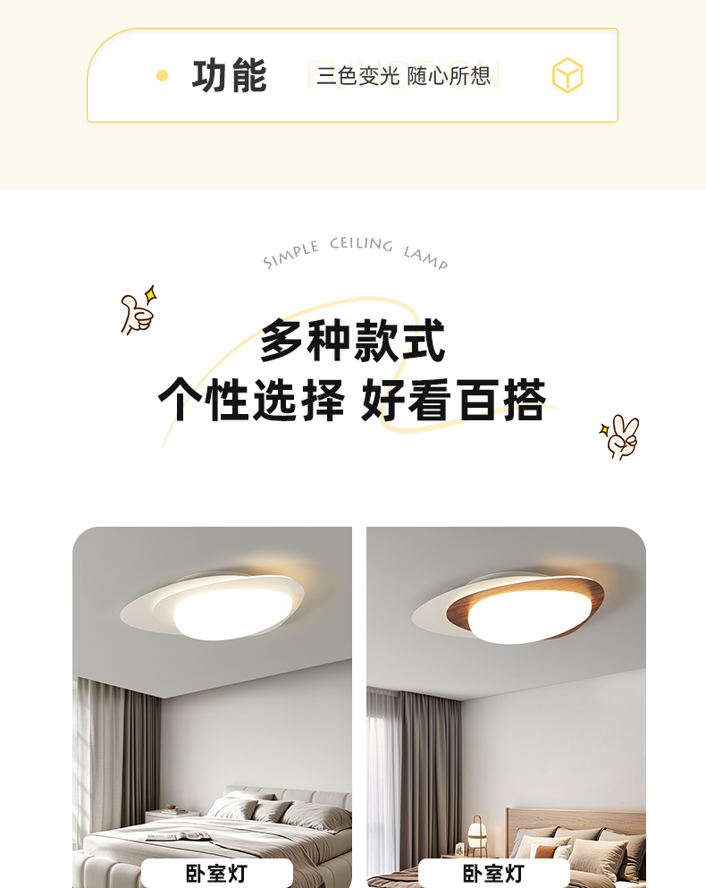 臥室燈現代簡約北歐溫馨氛圍全光譜護眼主臥書房間護眼吸頂燈具