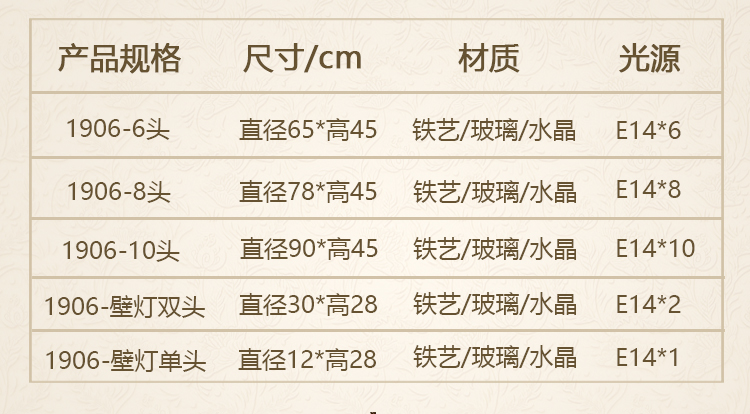 直徑65*高45CM/E14拉尾*6(不含光源) (
