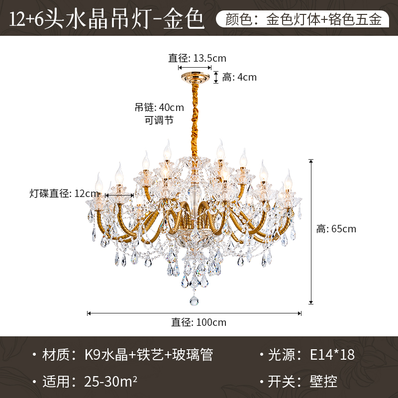 法式水晶吊燈客廳輕奢高檔歐式燈臥室房間餐廳別墅複式樓蠟燭吊燈