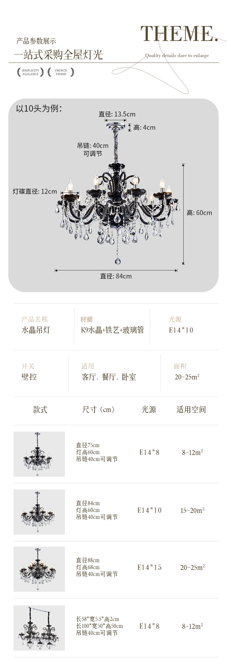 84*60CM/E14*10(不含光源) (