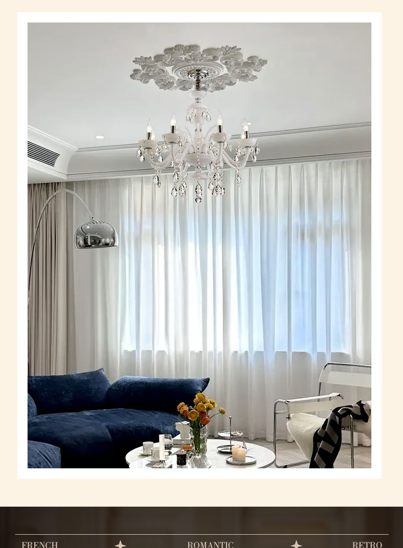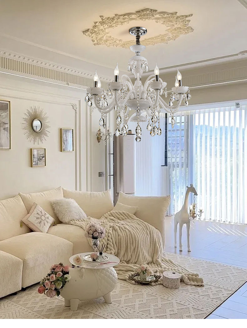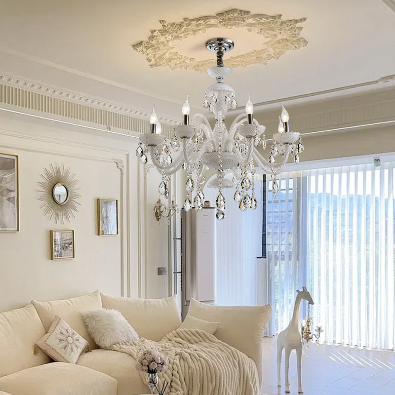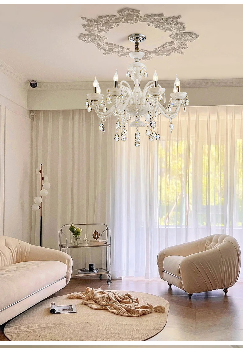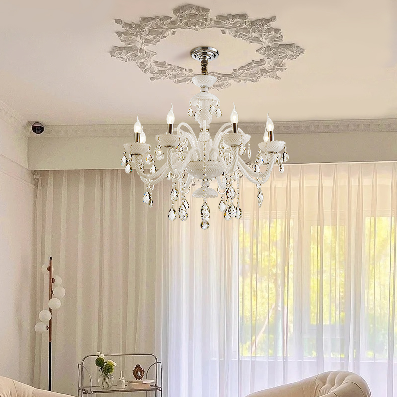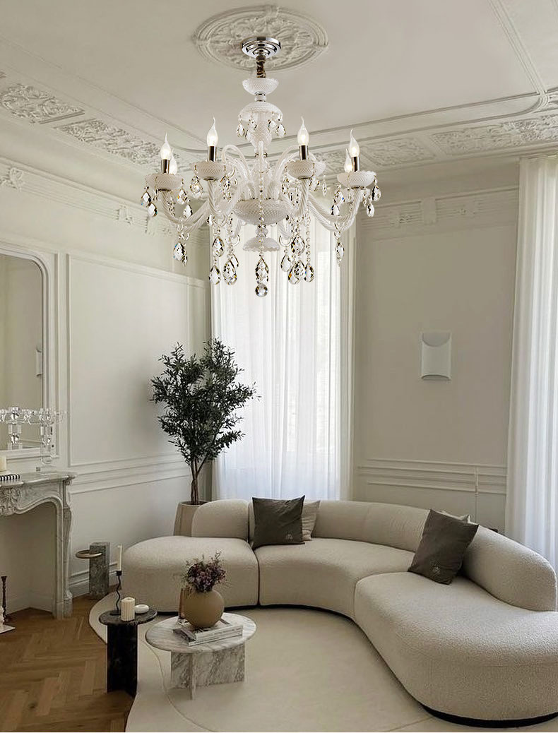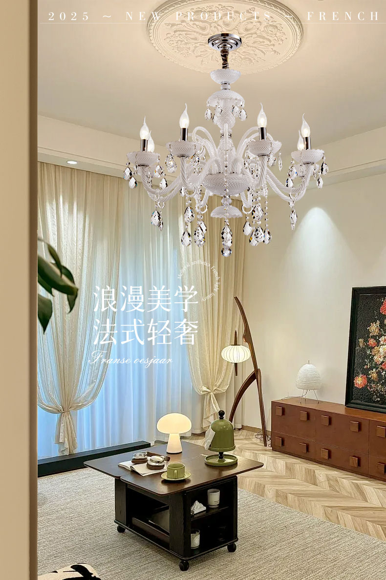 法式客廳水晶吊燈餐廳臥室吊燈白色現代家居燈別墅複式樓吊燈