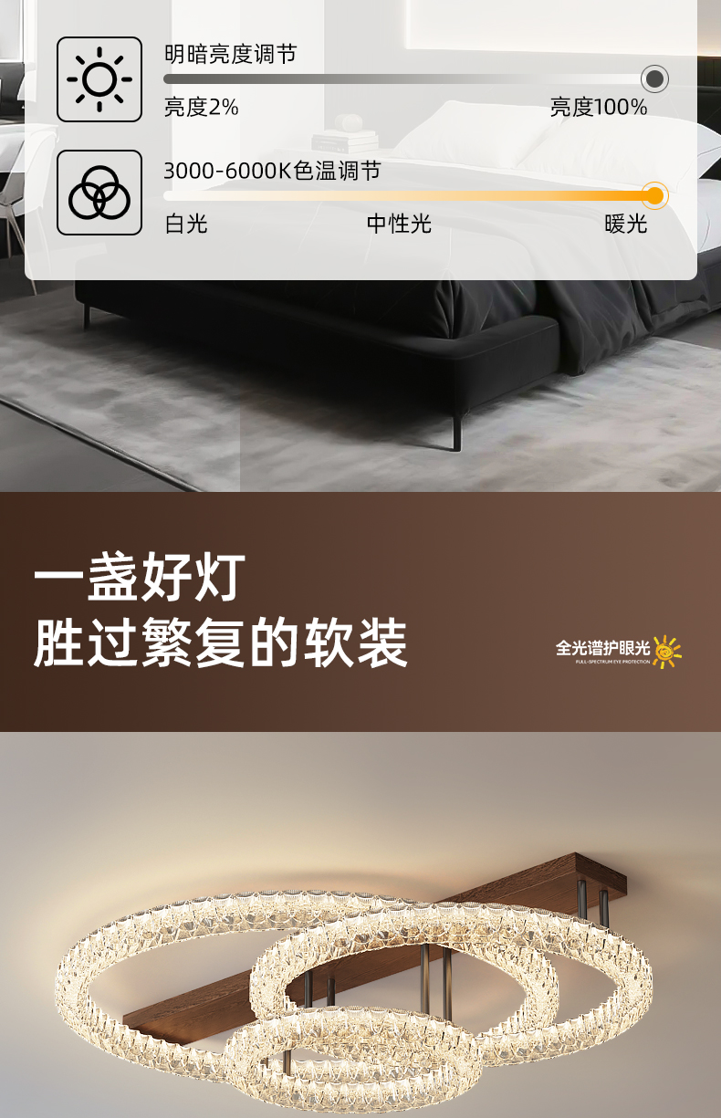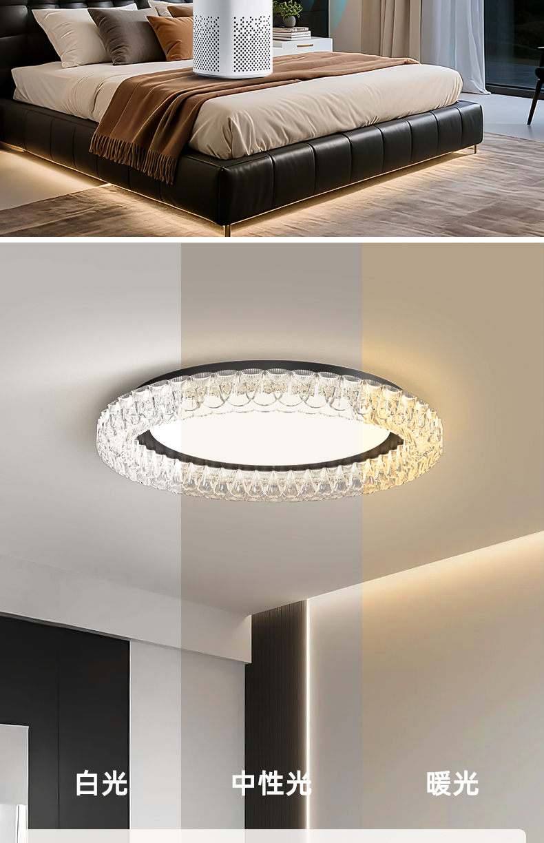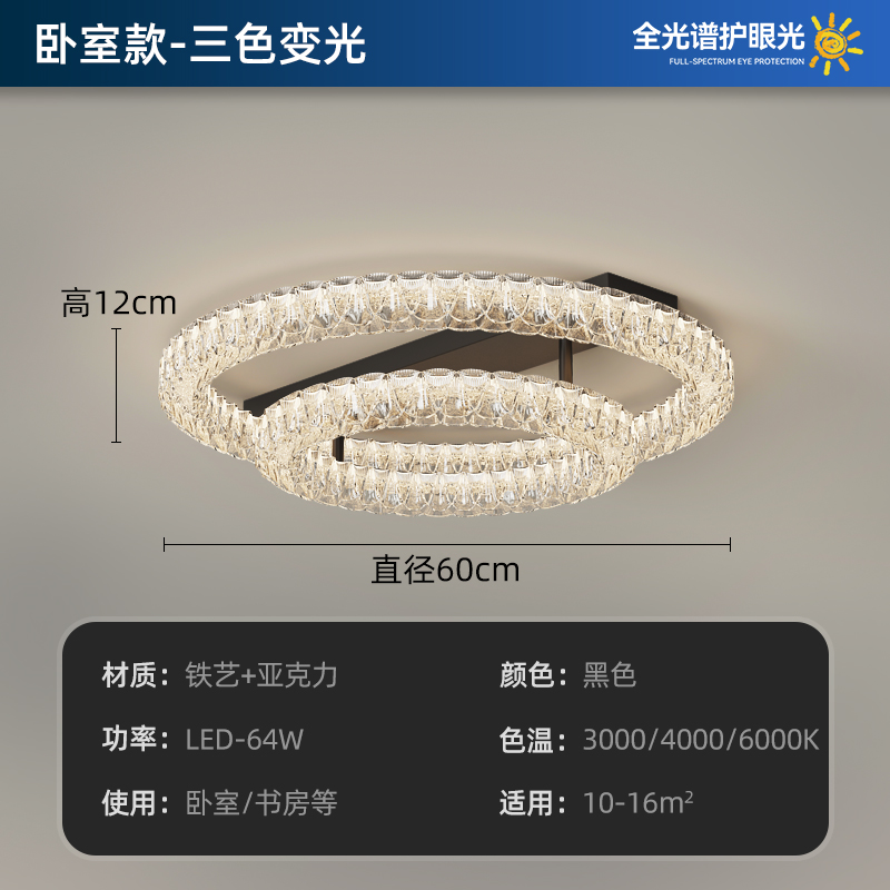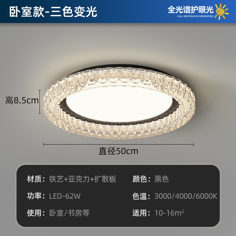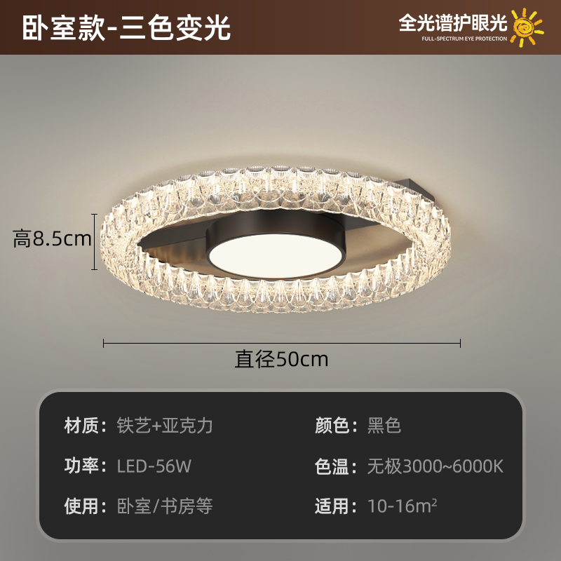 臥室燈2026新款中古風燈具現代簡約時尚家用水晶超亮護眼吸